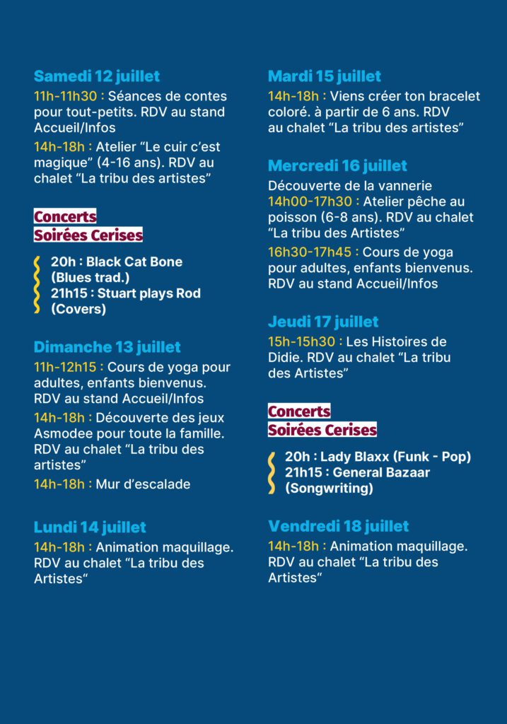 L'agenda 2025 des activités en un coup d'œil !